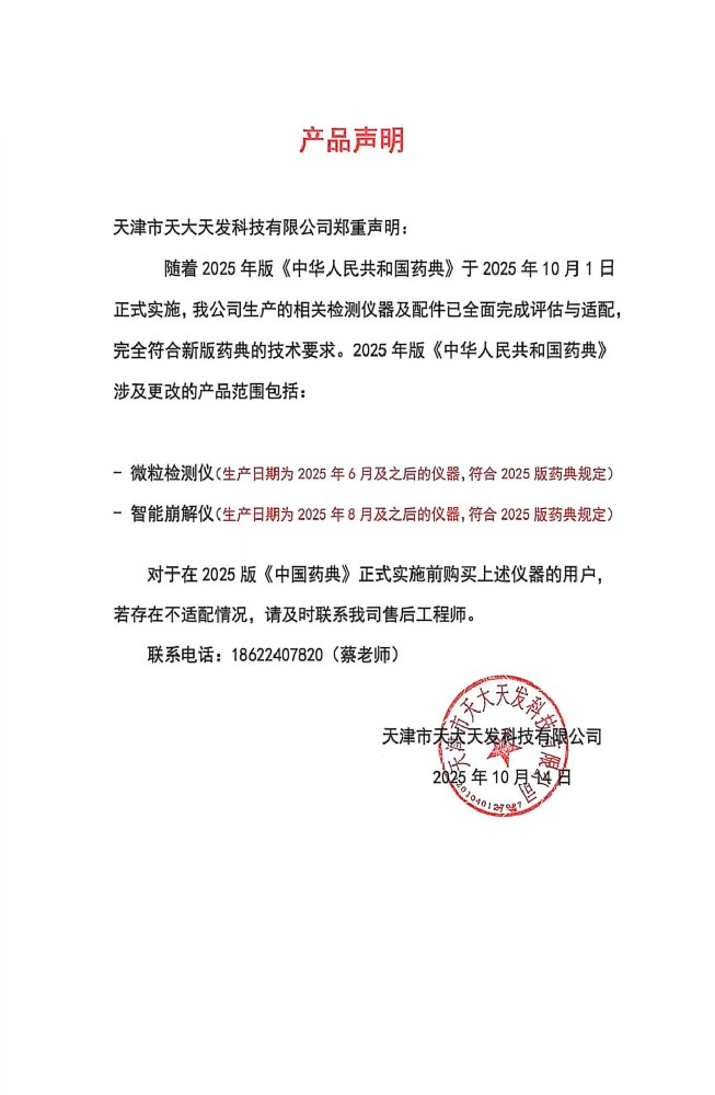| 尊敬的各界朋友們: 歡迎您進入天津市天大天發(fā)科技有限公司的網(wǎng)站進行瀏覽,首先感謝各界朋友多年來對天大天發(fā)藥品檢測儀器和分析儀器的關心與支持! 天津市天大天發(fā)科技有限公司是通過ISO9001質量管理體系認證、ISO14001環(huán)境管理體系的認證的高新技術企業(yè),是專業(yè)的藥檢儀器和分析儀器的制造廠商。 我們的產(chǎn)品包括藥品溶出儀系列、微粒檢測儀系列、內毒素檢查儀系列等40余種產(chǎn)品,主要產(chǎn)品覆蓋了全國所有省區(qū),部分產(chǎn)品已進入海外市場。公司在藥檢領域樹立了良好的品牌形象,贏得了廣大用戶的贊譽。 公司將更好地適應瞬息萬變的市場,增強企業(yè)的核心競爭力。抓住全球經(jīng)濟飛速發(fā)展的歷史性機遇,以創(chuàng)新精神進行新的創(chuàng)業(yè)。以高起點、高速度、高效率創(chuàng)造出中國藥品檢測儀器和分析儀器領域中的品牌形象,立足中國,走向國際。 我們熱切希望您成為天大天發(fā)科技有限公司的合作伙伴! |